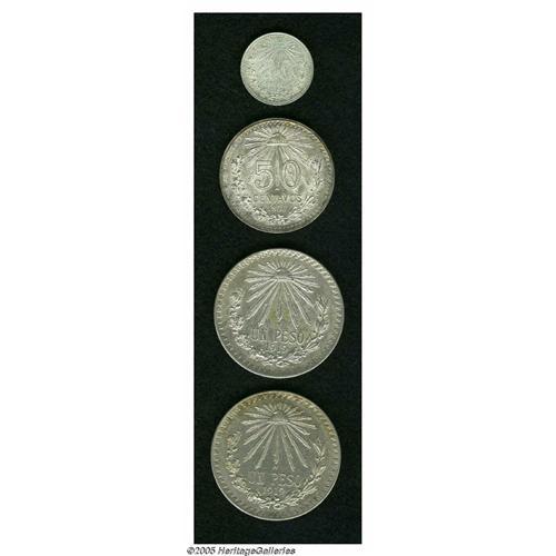 <B>Estados Unidos 1919 - Two Examples, </B></I>KM454, lustrous XF, lightly cleaned long ago and now toning, and XF-AU, also lightly cleaned with just a few tiny spots by the eagle's head, very scarce in high grade, plus 20 Centavos 1926, AU, and 50 Centavos 1906, brilliant UNC. <B>Sold as is, no return lot.</B></I>