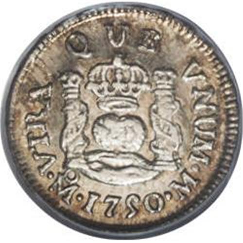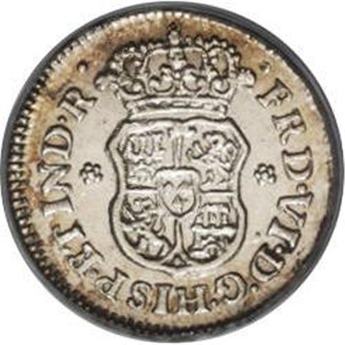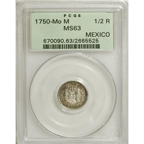 <B>Ferdinand VI Pillar Half Real 1750 Mo-M,</B></I> KM67.1, Cayon-10170, MS63 PCGS. Well struck and brilliant with full luster and scattered small splashes of light russet patina.<BR><BR><b>Shipping:</b> Coins & Currency (<a target="_blank" href="http://www.heritageauctions.com/common/shipping.php">view shipping information</a>)