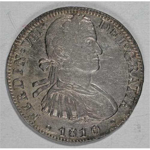 <B>Ferdinand VII 8 Reales 1810 Mo-HJ,</B></I> KM110, lustrous XF with minor obverse flan flaws.<BR><BR><b>Shipping:</b> Coins & Currency (<a target="_blank" href="http://www.heritageauctions.com/common/shipping.php">view shipping information</a>)