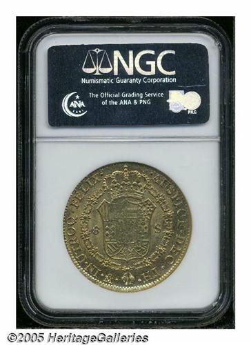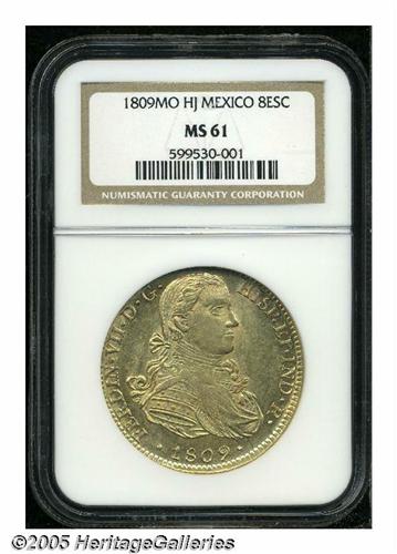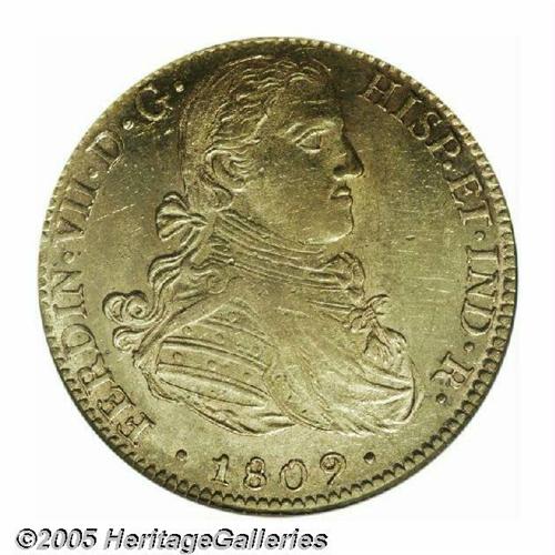 <B>Ferdinand VII Gold 8 Escudos 1809 Mo-HJ,</B></I> KM160, MS61 NGC. Lustrous with some scuffing and abrasions on both sides.