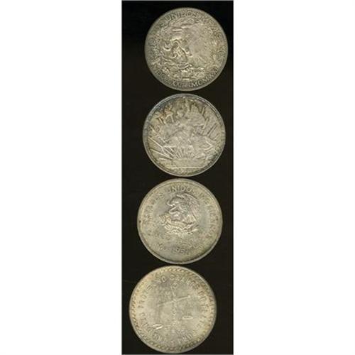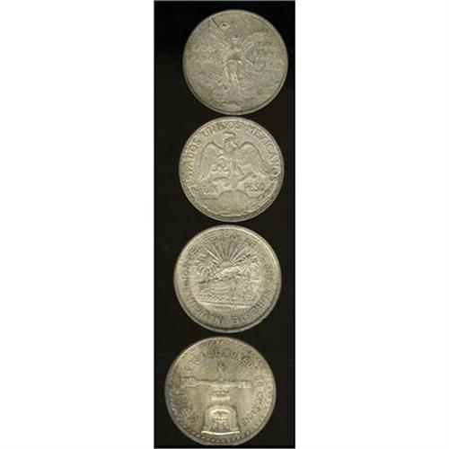<B>Four-piece lot as follows:</B></I> 2 Pesos 1921, VF-XF with heavy abrasions; Caballito Peso 1910, XF; Railroad 5 Pesos 1950 , AU; and a silver Onza 1949, lightly toned UNC with moderate contact marks.<BR><BR><b>Shipping:</b> Coins & Currency (<a target="_blank" href="http://www.heritageauctions.com/common/shipping.php">view shipping information</a>)