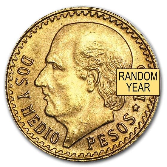 One piece Mexico Gold 2 1/2 Pesos AGW .0603 (Random Year)