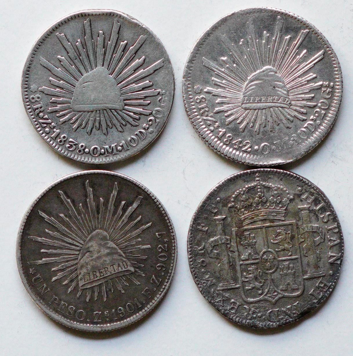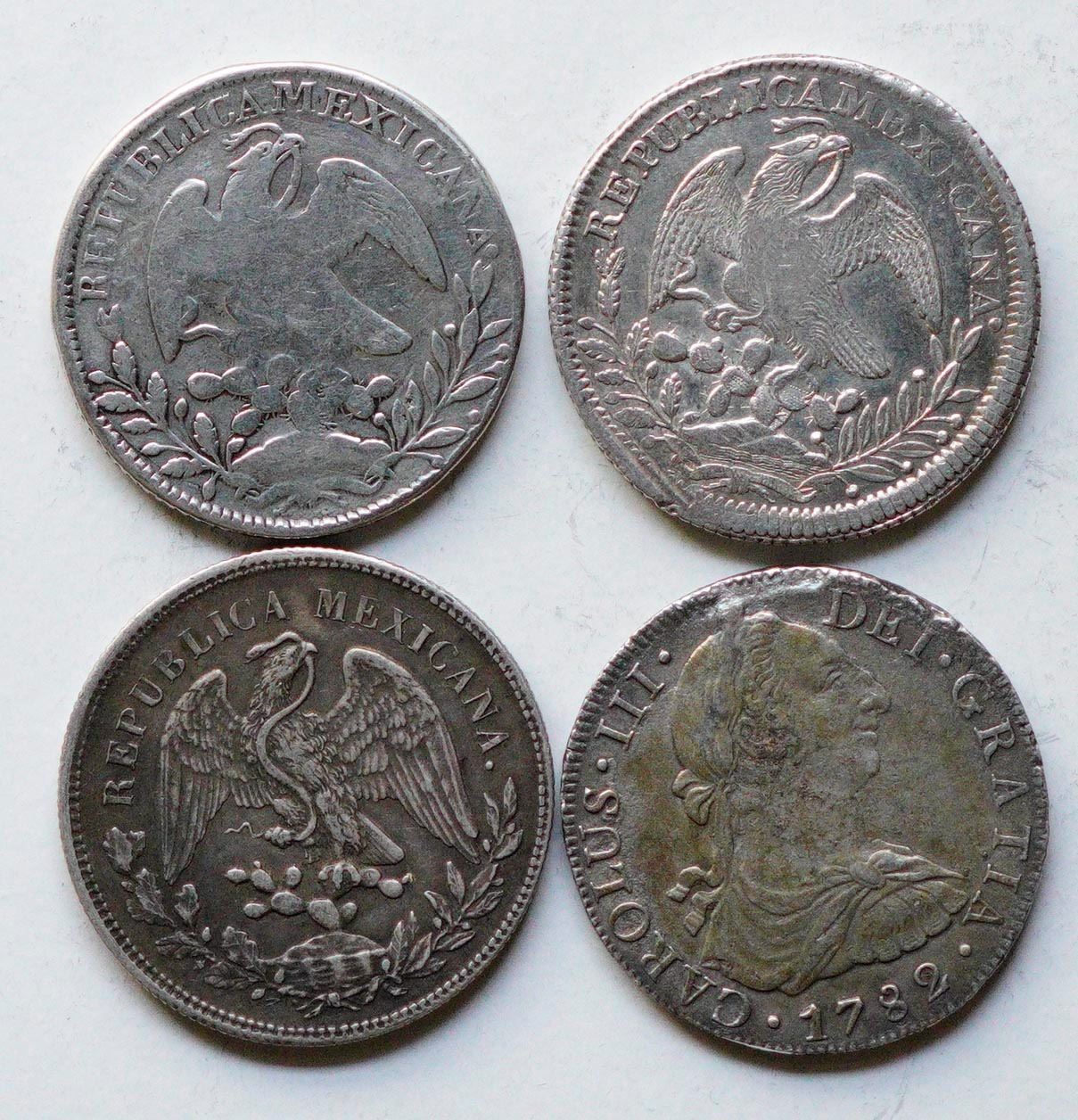 Mexico; Lot of 4 silver "8 Reales" and Pesos. Fine to EF.