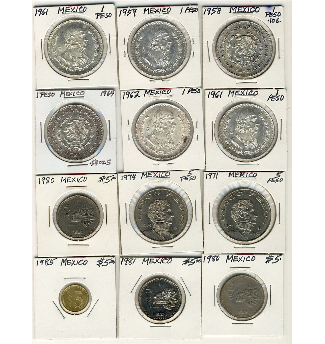 Mexico; Lot of approximately 150 coins 1950s to date. All in 2x2's. Includes Centavos to $200.
