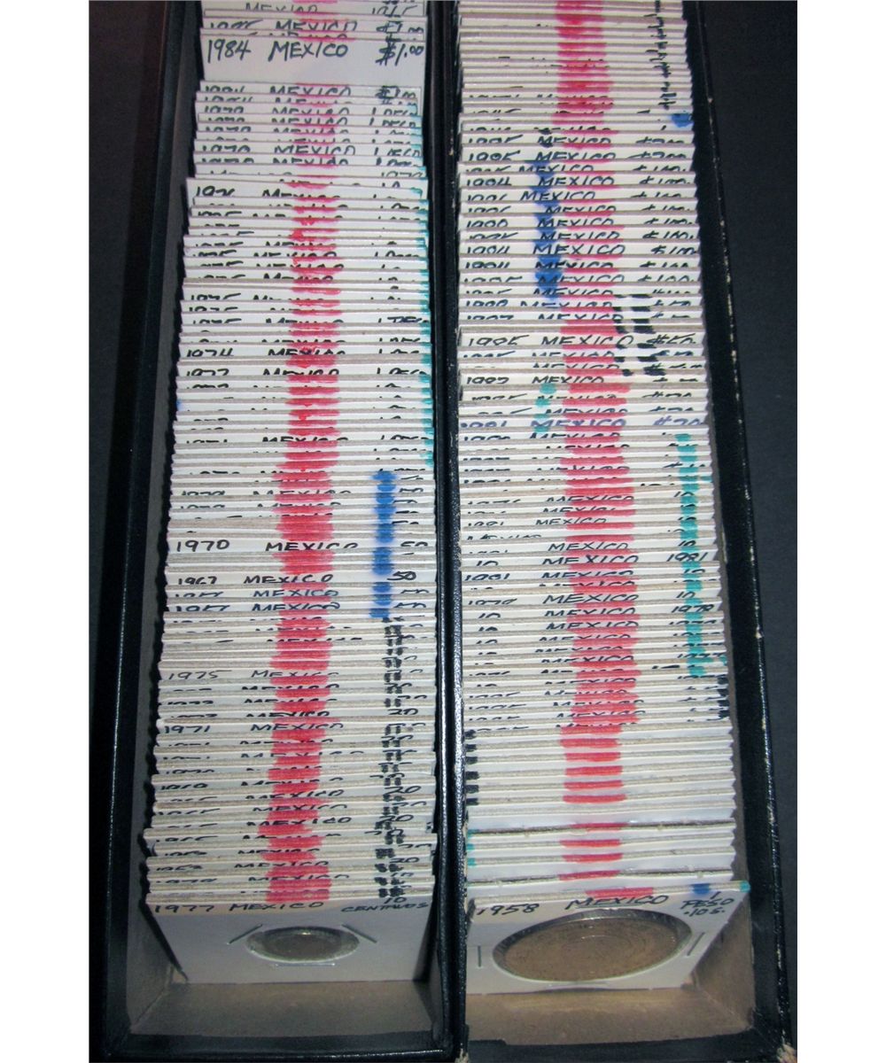 Mexico; Lot of approximately 150 coins 1950s to date. All in 2x2's. Includes Centavos to $200.