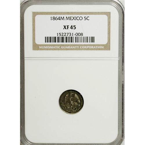 <B>Maximilian 5 Centavos 1864-M,</B></I> KM-385.1, XF45 NGC.<BR><BR><b>Shipping:</b> Coins & Currency (<a target="_blank" href="http://www.heritageauctions.com/common/shipping.php">view shipping information</a>)