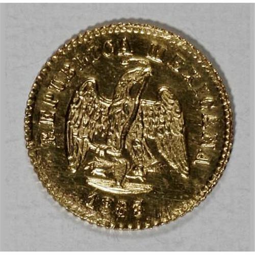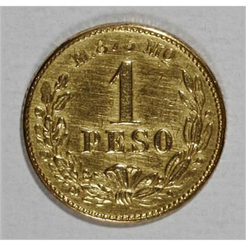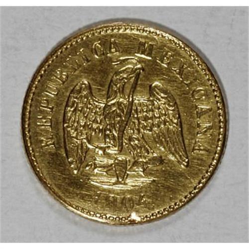 <B>A two-piece lot of Republic gold Pesos as follows:</B></I> KM410, 1883Mo-M, 83/72 overdate, prooflike UNC, few minor adjustment marks, and 1904Mo-M, cleaned XF, possibly ex-jewelry. <B>Sold as is, no return lot.</B></I><BR><BR><b>Shipping:</b> Coins & Currency (<a target="_blank" href="http://www.heritageauctions.com/common/shipping.php">view shipping information</a>)