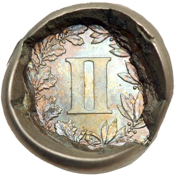 Mexico. Mint Error: Two Piece Bonded Set of 2 Centavos (1882). KM-395. Copper-nickel. Die cup of obverse and reverse boned together. PCGS graded MS-65, With tag but not in holder.