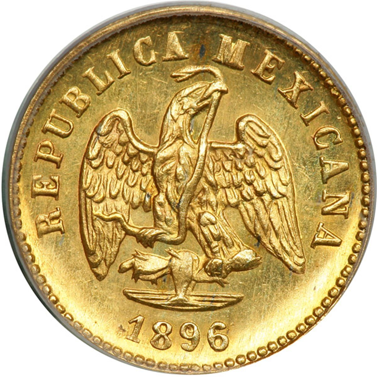 Mexico. Peos, 1896-Mo B. Fr-157; KM-410.5. Eagle. Reverse: Value. PCGS graded MS-64.
