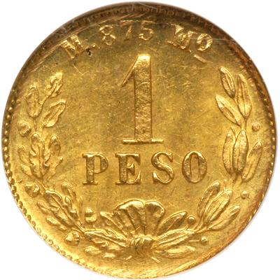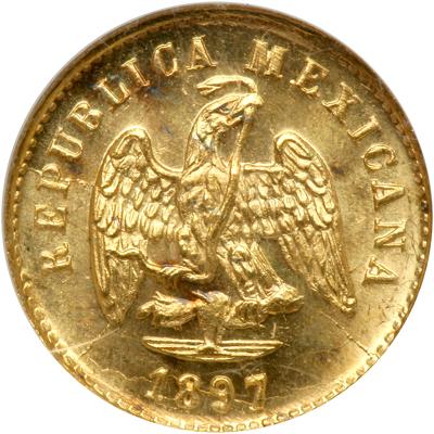 Mexico. Peso, 1897-Mo M. Fr-157; KM-410.5. Eagle. Reverse: Value. NGC graded MS-64.