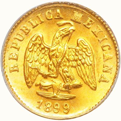Mexico. Peso, 1899-Mo M. Fr-157; KM-410.5. Republic. Eagle. Reverse: Value. PCGS graded MS-65.
