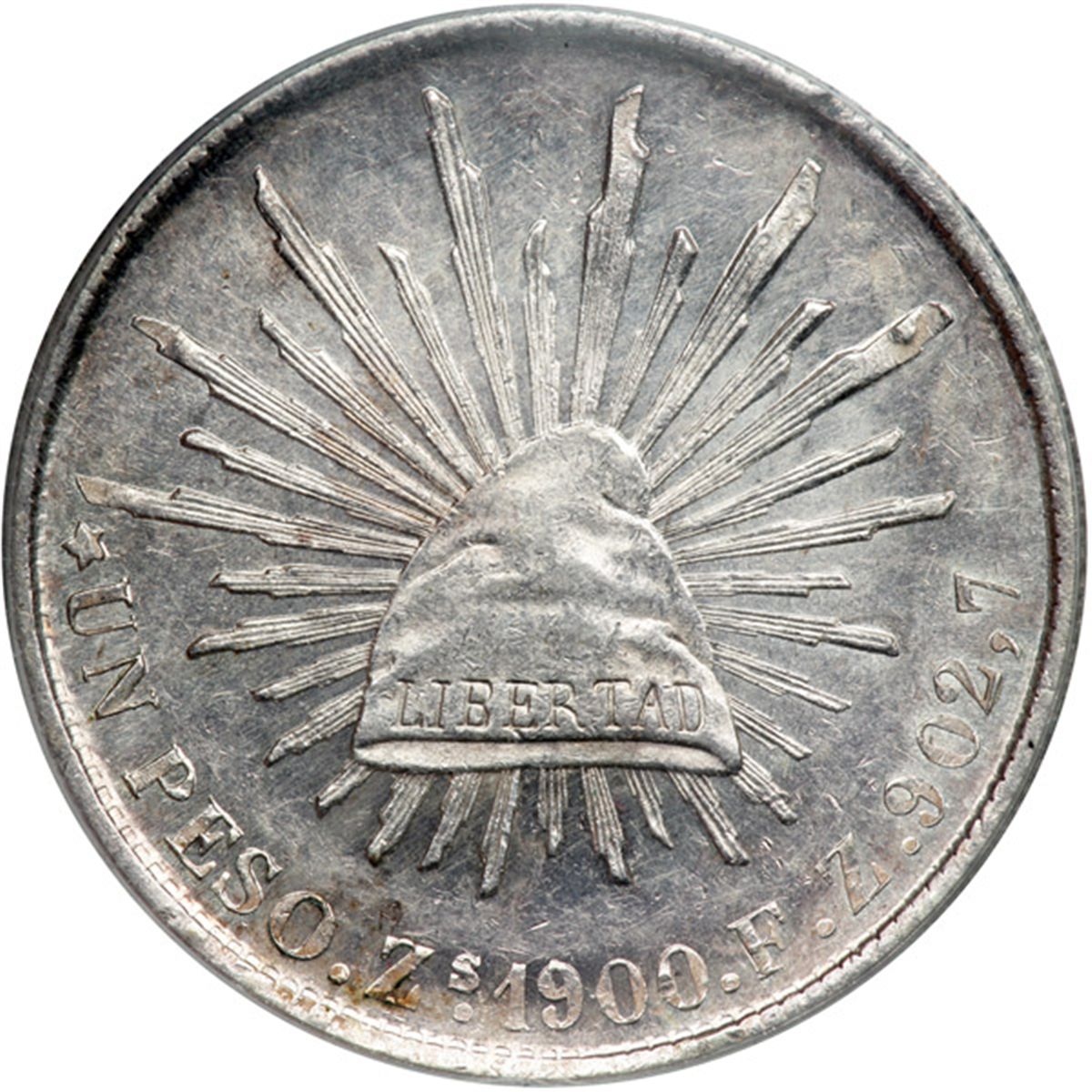 Mexico. Peso, 1900-Zs FZ. KM-409.3; Eliz-1047. Cap and ray. PCGS graded MS-61.