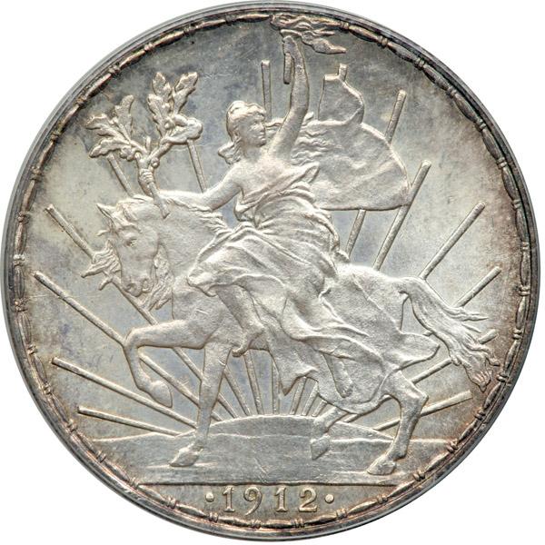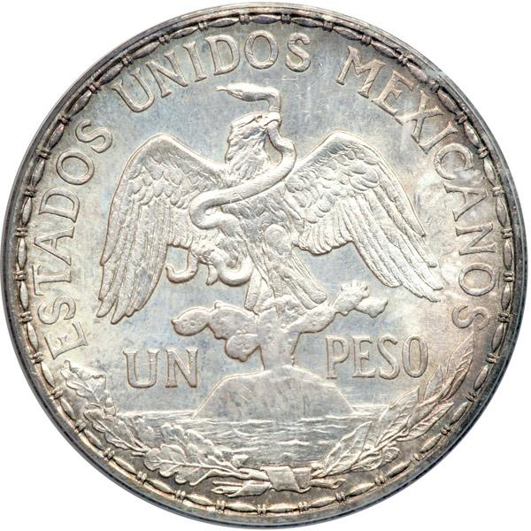 Mexico. Peso, 1912. KM-453; Eliz-1057. Caballito type. An abundance of original fresh mint luster with a lovely light golden tone. PCGS graded MS-64.