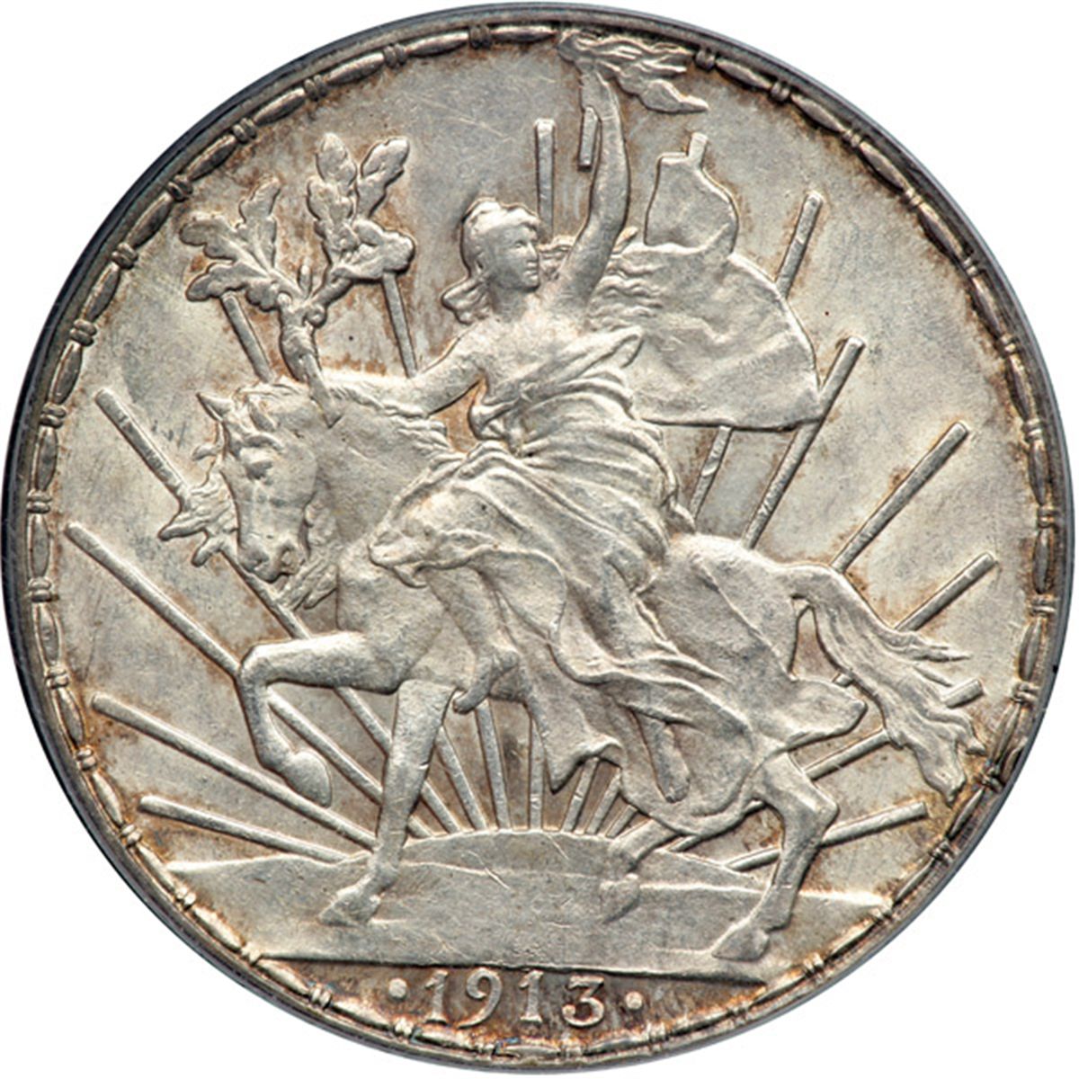 Mexico. Peso, 1913. KM-453; Eliz-1059. Caballito. Liberty on horseback. PCGS graded MS-63.