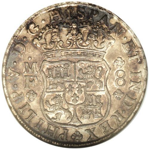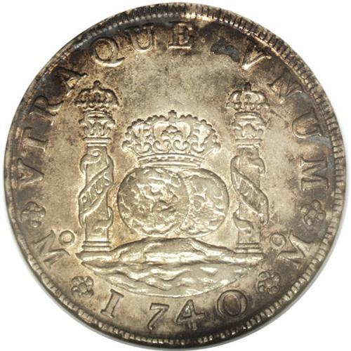 <B>Philip V Pillar 8 Reales 1740 Mo-MF,</B></I> KM103, Cayon-9421, AU58 NGC. Mottled charcoal-gray toning with traces of luster and bold definition.<BR><BR><b>Shipping:</b> Coins & Currency (<a target="_blank" href="http://www.heritageauctions.com/common/shipping.php">view shipping information</a>)