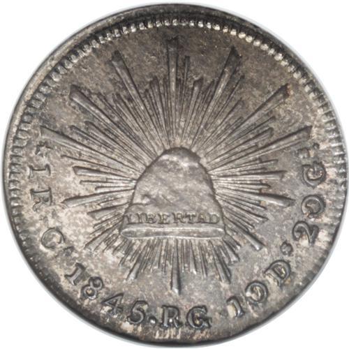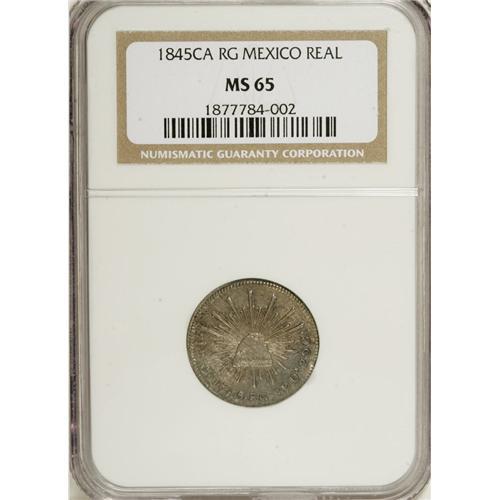 Mexico: Republic 1 Real 1845 Ca-RG, KM372, MS65