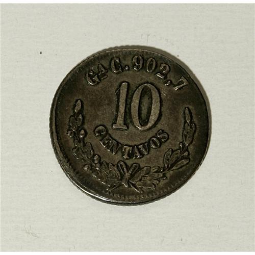 <B>Republic 10 Centavos 1871-Ga C,</B></I> KM-403.4, mintage just 4,734 pieces, F/VF.<BR><BR><b>Shipping:</b> Coins & Currency (<a target="_blank" href="http://www.heritageauctions.com/common/shipping.php">view shipping information</a>)
