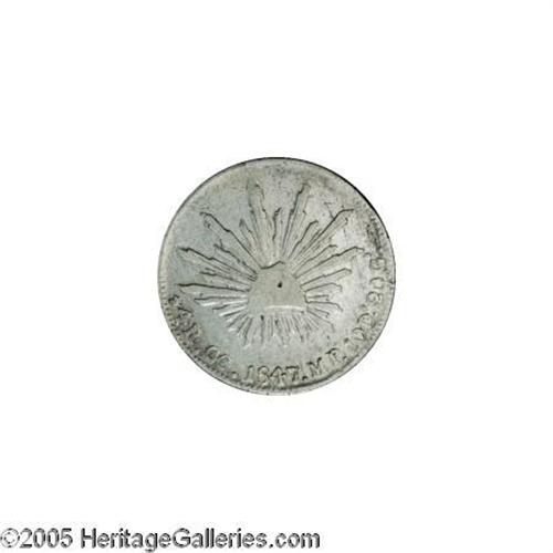 <B>Republic 4 Reales 1847 GC-MP,</B></I> KM375.3, Fine with weakly struck centers. Extremely rare.