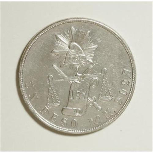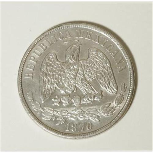 <B>Republic Balance Scale Peso 1870 Mo-M,</B></I> KM408.5, AU. <BR><BR><b>Shipping:</b> Coins & Currency (<a target="_blank" href="http://www.heritageauctions.com/common/shipping.php">view shipping information</a>)