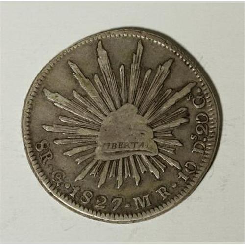 <B>Republic Cap and Rays 8 Reales 1827 Go-MR,</B></I> KM377.8, VF. Very scarce. <BR><BR><b>Shipping:</b> Coins & Currency (<a target="_blank" href="http://www.heritageauctions.com/common/shipping.php">view shipping information</a>)