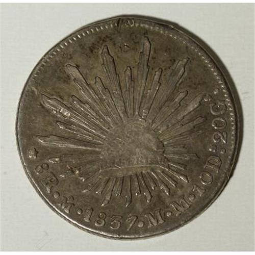 <B>Republic Cap and Rays 8 Reales 1837 Mo-MM,</B></I> KM377.10, VF-XF details with rim bumps and cuts on both sides. Very scarce. <BR><BR><b>Shipping:</b> Coins & Currency (<a target="_blank" href="http://www.heritageauctions.com/common/shipping.php">view shipping information</a>)
