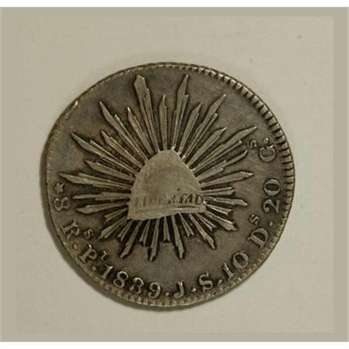 <B>Republic Cap and Rays 8 Reales 1839 Pi-JS, </B></I> KM377.12, VF. Scarce. <BR><BR><b>Shipping:</b> Coins & Currency (<a target="_blank" href="http://www.heritageauctions.com/common/shipping.php">view shipping information</a>)