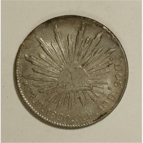 Mexico Republic Cap and Rays 8 Reales 1860 C-CE,