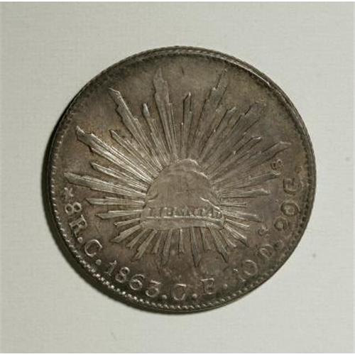 Mexico Republic Cap and Rays 8 Reales 1863 C-CE,