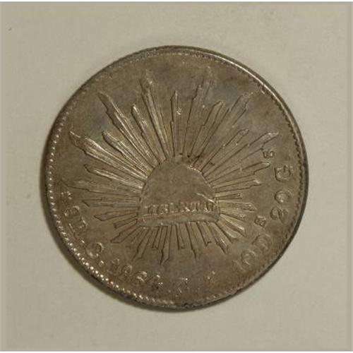 Mexico Republic Cap and Rays 8 Reales 1864 C-CE,