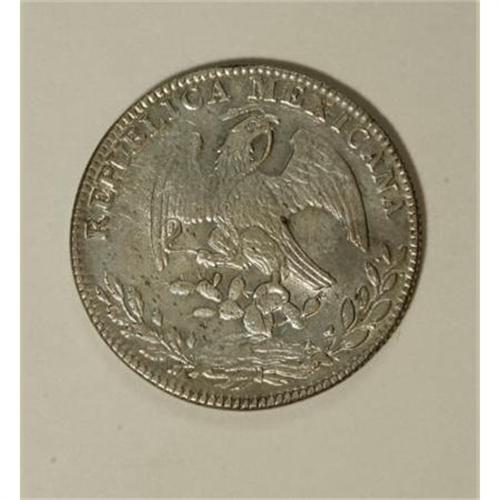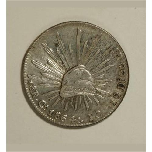 <B>Republic Cap and Rays 8 Reales 1864 Ca-JC,</B></I> KM377.2, lustrous, Choice AU. Scarce. <BR><BR><b>Shipping:</b> Coins & Currency (<a target="_blank" href="http://www.heritageauctions.com/common/shipping.php">view shipping information</a>)