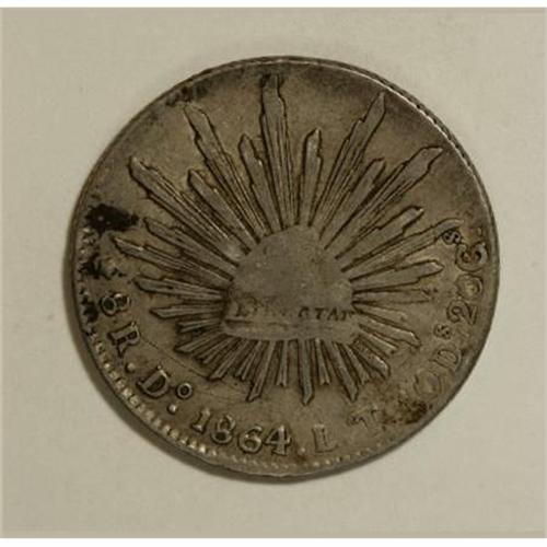 <B>Republic Cap and Rays 8 Reales 1864 Do-LT,</B></I> KM377.4, VF with obverse scratch. Rare and underrated.<BR><BR><b>Shipping:</b> Coins & Currency (<a target="_blank" href="http://www.heritageauctions.com/common/shipping.php">view shipping information</a>)