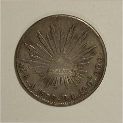<B>Republic Cap and Rays 8 Reales 1870 A-DL,</B></I> KM377, VF. Scarce in VF or better without chopmarks.<BR><BR><b>Shipping:</b> Coins & Currency (<a target="_blank" href="http://www.heritageauctions.com/common/shipping.php">view shipping information</a>)