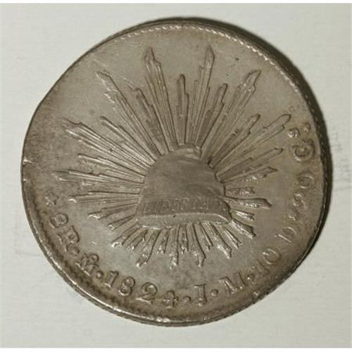 <B>Republic Cap and Rays 8 Reales 1824 Mo-JM,</B></I> KM377.10, VF with light graffiti on the cap. Very scarce. <BR><BR><b>Shipping:</b> Coins & Currency (<a target="_blank" href="http://www.heritageauctions.com/common/shipping.php">view shipping information</a>)