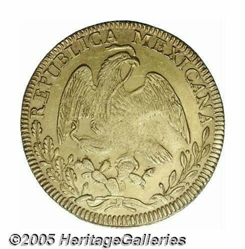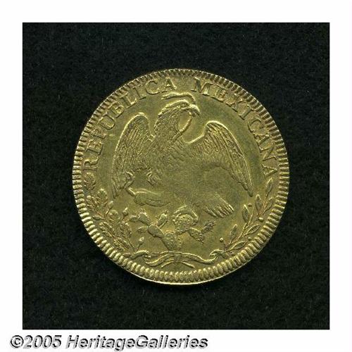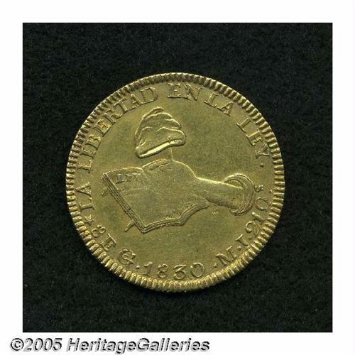 <B>Republic Cap and Rays Gold 8 Escudo 1830 Go-MJ,</B></I> KM383.7, XF with some softness in the central areas. A bit scarcer than one might expect. From the Dr. Kurt Peters Collection.