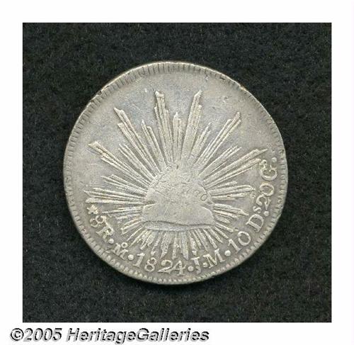 <B>Republic Cap and Rays Hookneck 8 Reales 1824 MO-JM,</B></I> KM-A376.2, F-VF.