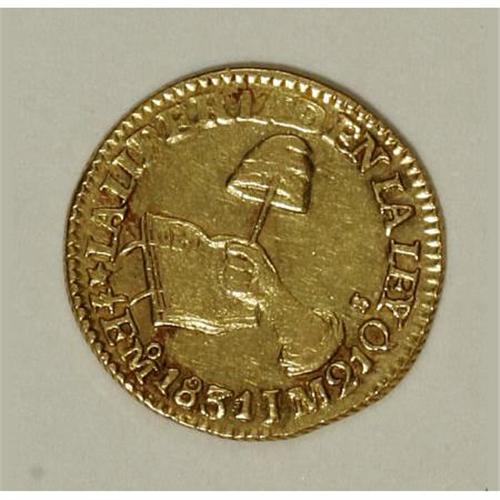 <B>Republic Hand on Book gold 1/2 Escudo 1831/0 Mo-JM,</B></I> KM378.5, XF. <BR><BR><b>Shipping:</b> Coins & Currency (<a target="_blank" href="http://www.heritageauctions.com/common/shipping.php">view shipping information</a>)
