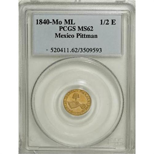 <B>Republic Hand on Book gold 1/2 Escudo 1840 Mo-ML,</B></I> KM378.5, MS62 PCGS. Softly struck in the centers with full luster. Very scarce in this condition.<BR><BR><b>Shipping:</b> Coins & Currency (<a target="_blank" href="http://www.heritageauctions.com/common/shipping.php">view shipping information</a>)