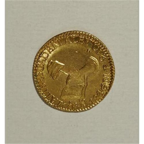 <B>Republic Hand on Book gold 1/2 Escudo 1846/5 Mo-MF,</B></I> KM378.5, lustrous UNC with light abrasions. <BR><BR><b>Shipping:</b> Coins & Currency (<a target="_blank" href="http://www.heritageauctions.com/common/shipping.php">view shipping information</a>)