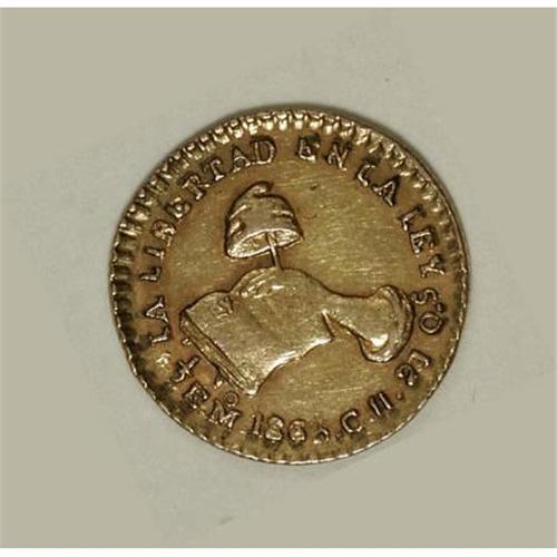 <B>Republic Hand on Book gold 1/2 Escudo 1863/57 Mo-CH/GF,</B></I> KM378.5, XF with softly struck centers. Evidently, all examples of this date are 1863/57 Mo-CH/GF, but the overdates are difficult to discern on this piece and the last digit of the date is very crude.<BR><BR><b>Shipping:</b> Coins & Currency (<a target="_blank" href="http://www.heritageauctions.com/common/shipping.php">view shipping information</a>)
