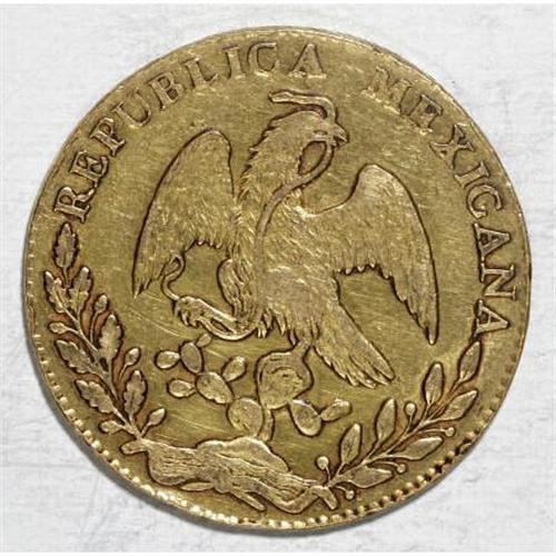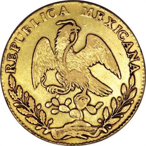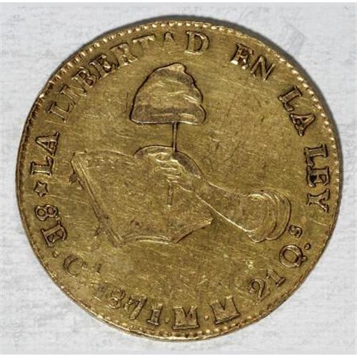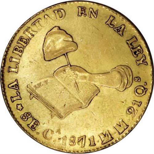 <B>Republic Hand on Book gold 8 Escudos 1871/61 Ca-MM,</B></I> KM383.1, XF with light abrasions and some remaining luster.<BR><BR><b>Shipping:</b> Coins & Currency (<a target="_blank" href="http://www.heritageauctions.com/common/shipping.php">view shipping information</a>)