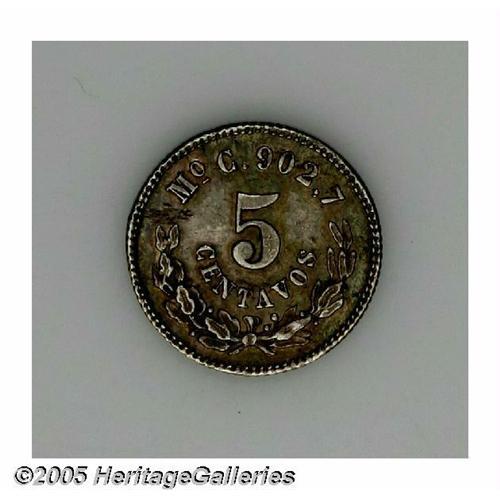 <B>Republic Pattern 5 Centavos 1868 Mo-C,</B></I> KM-PN108, XF. Very scarce.