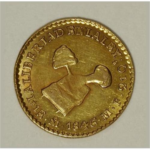 <B>Republic gold Hand on Book 1 Escudo 1846/5 Mo-MF,</B></I> KM379.5, XF with softly struck centers. Rare.<BR><BR><b>Shipping:</b> Coins & Currency (<a target="_blank" href="http://www.heritageauctions.com/common/shipping.php">view shipping information</a>)