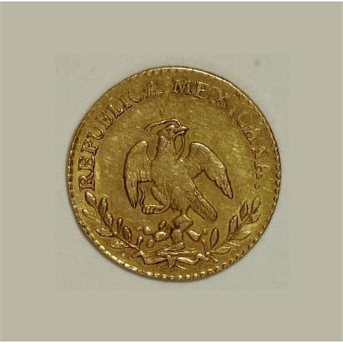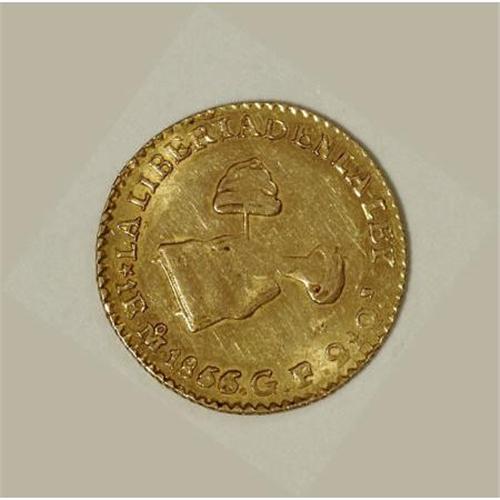 <B>Republic gold Hand on Book 1 Escudo 1856/4 Mo-GF,</B></I> KM379.5, XF. Scarcer than one might expect. <BR><BR><b>Shipping:</b> Coins & Currency (<a target="_blank" href="http://www.heritageauctions.com/common/shipping.php">view shipping information</a>)