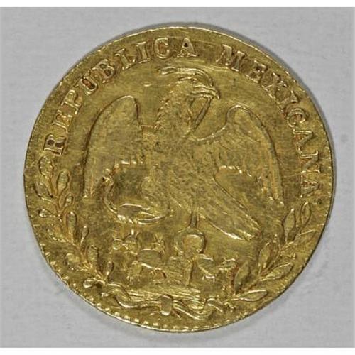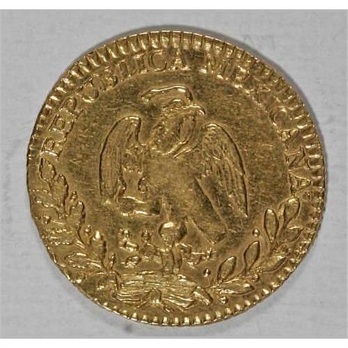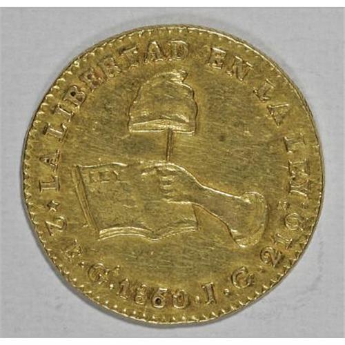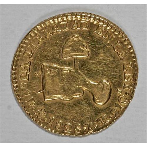<B>Republic gold Hand on Book Duo,</B></I> KM379.5 Escudo 1825Mo-JM, VF-XF, lightly polished, popular first date of this series, and KM380.3 2 Escudos 1860Ga-JG, 6/5 overate, well-struck XF with just a few tiny surface scratches, very attractive and a very scarce date. <B>Sold as is, no return lot.</B></I><BR><BR><b>Shipping:</b> Coins & Currency (<a target="_blank" href="http://www.heritageauctions.com/common/shipping.php">view shipping information</a>)