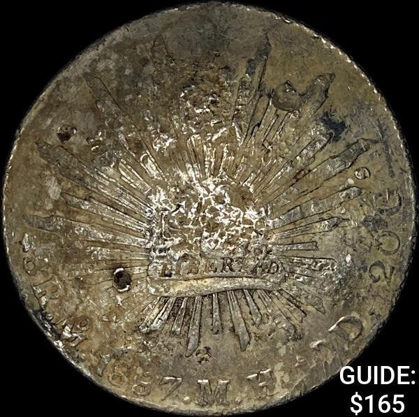Mexico Silver 8 Reales Cap & Ray Chopmarked CLOSELY UNCIRCULATED