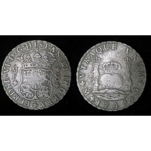 Mexico Silver 8 Reales KM#104,1 1749Mo VF(b)<BR><BR>Each individual coin and/or lot will show the gradefollowed by a letter ranking (a), (b) and (c). The letter (a) will indicate that the salt water has had some minor affect on the coins and its patina is not unattractive. The letter (b) will indicate that the coinsshow some form of sea immersion affects in that the patina may show slightly more corrosion, however the coin remains aesthetically pleasing. The letter (c) will indicate sea immersion affects more severe than the (b) type described above, but all the dates and details will be there and visible. Extensively damaged or worn coins will be described and priced as such.<BR><BR>Notice. For all winners of lots pertaining to the Auguste Shipwreck, please be advised that due to Canadian Laws in reference to the Exportation of Archeological and Shipwreck finds, a request for permission to export these items must to be filled and sent into Canadian Customs for approval for every lot won and shipped outside Canada. In most cases this will cause a delay of 10 to 20 business days for all shipment of lots once payment received. We have been in discussion with Canada Customs and anticipate no problems. We ask for your patience and will do our best to keep each buyer updated on their lots. Please contact us for further information if necessary.