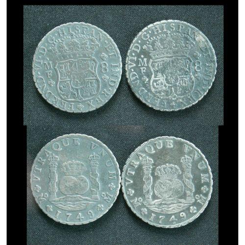 Mexico Silver 8 Reales KM#104,1 1749Mo VF(b). Lot of 2 coins<BR><BR>Each individual coin and/or lot will show the gradefollowed by a letter ranking (a), (b) and (c). The letter (a) will indicate that the salt water has had some minor affect on the coins and its patina is not unattractive. The letter (b) will indicate that the coinsshow some form of sea immersion affects in that the patina may show slightly more corrosion, however the coin remains aesthetically pleasing. The letter (c) will indicate sea immersion affects more severe than the (b) type described above, but all the dates and details will be there and visible. Extensively damaged or worn coins will be described and priced as such.<BR><BR>Notice. For all winners of lots pertaining to the Auguste Shipwreck, please be advised that due to Canadian Laws in reference to the Exportation of Archeological and Shipwreck finds, a request for permission to export these items must to be filled and sent into Canadian Customs for approval for every lot won and shipped outside Canada. In most cases this will cause a delay of 10 to 20 business days for all shipment of lots once payment received. We have been in discussion with Canada Customs and anticipate no problems. We ask for your patience and will do our best to keep each buyer updated on their lots. Please contact us for further information if necessary.
