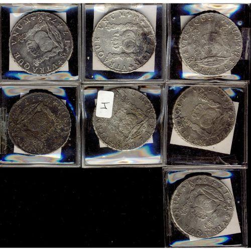Mexico Silver 8 Reales (Mo). Lot 7 examples including 1743, 1744, 1745, 1746, 1747 Philip, 1747 Ferdinand and 1748. VG to VF ;with moderate to heavy sea corrosion. A must see<BR><BR>Each individual coin and/or lot will show the gradefollowed by a letter ranking (a), (b) and (c). The letter (a) will indicate that the salt water has had some minor affect on the coins and its patina is not unattractive. The letter (b) will indicate that the coinsshow some form of sea immersion affects in that the patina may show slightly more corrosion, however the coin remains aesthetically pleasing. The letter (c) will indicate sea immersion affects more severe than the (b) type described above, but all the dates and details will be there and visible. Extensively damaged or worn coins will be described and priced as such.<BR><BR>Notice. For all winners of lots pertaining to the Auguste Shipwreck, please be advised that due to Canadian Laws in reference to the Exportation of Archeological and Shipwreck finds, a request for permission to export these items must to be filled and sent into Canadian Customs for approval for every lot won and shipped outside Canada. In most cases this will cause a delay of 10 to 20 business days for all shipment of lots once payment received. We have been in discussion with Canada Customs and anticipate no problems. We ask for your patience and will do our best to keep each buyer updated on their lots. Please contact us for further information if necessary.