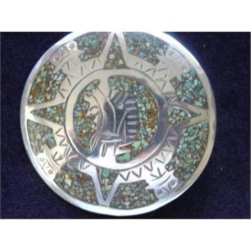 Here is alarge very nice old 1940-1960s signed Brooch and Pendant. It is signed Mexico Sterling and also signed by the artist JBA. This is some Mexican, or African symbol on the front. There is carefully hand engraved sterling silver figures with inlay of lapis, turquoise, mother of pearl, jade and other pieces of inlay stone. This pendant and brooch is about 2 1/2 wide inchs by 2 1/2 inches tall. It appears in good condition.