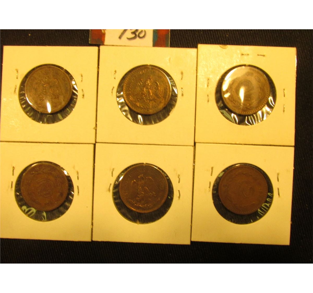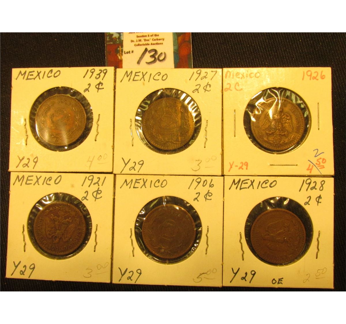 Mexico Two Centavo Collection: 1906mo, 21mo, 26mo, 27mo, 28mo, & 39mo. Grades up to VF.
